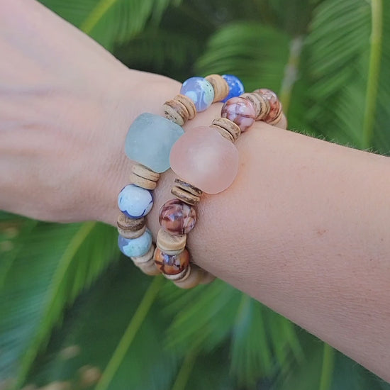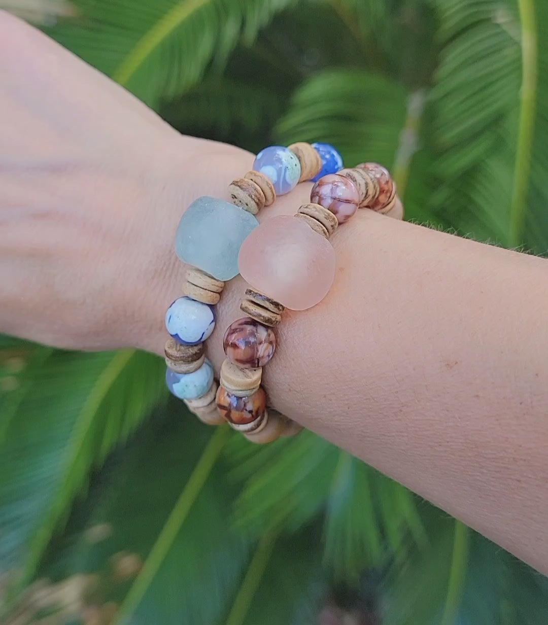 Pink Glass Bead Gemstone Bead Boho Bracelet